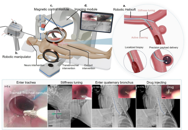 Helixoft微机器人系统为微创介入器械提供了一种全新的“机器人赋能”技术范式。通过在单一外部磁场作用下实现器械力学性能与运动形态的实时重构,该系统有望突破传统介入工具在复杂腔道环境中的操控瓶颈。